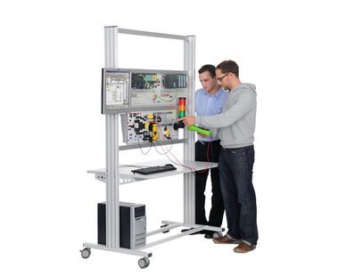 The training systems dealing with the topic of ”Safety Technology“ cover the subject‘s entire spectrum from simple circuits using safety relays to AS-i Safety with a safety monitor through to fail-safe process controls with PROFIsafe. Optical systems such as light curtains or laser scanners can also be easily integrated into these systems. The heart of the model is the protective door with safety position switch on which a wide range of safety applications can be trained.