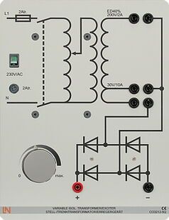 Variable isolating transformer as exciter 0-200 V for field excitation of DC, synchronous and multi-function machines.