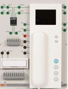 Bus-operated building-internal telephone system with colour monitor, including the following functions and components: