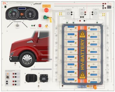 The HV battery is constructed in such a way that it can be disassembled in order to replace individual cells and sensors. In this way, the HV battery is diagnosed and repaired in an action and practice-oriented manner. Particular focus is placed on system-critical situations that can occur in the event of a malfunction in the hybrid and electric vehicle. In particular, faults are dealt with that occur on the vehicle but cannot be worked through independently during training. This includes not only the HV system and its control and protective devices, but also critical faults in the energy storage system itself. Diagnostics can be started in a practical manner using the integrated diagnostic tester. The diagnosis can be further deepened with the integrated and workshop-standard HV measuring equipment. This includes not only measurable faults in the HV safety systems, but also faults in the temperature sensors and battery cells, the practical replacement of which can be carried out. In this way, a qualification level for working in energy storage systems is also achieved.