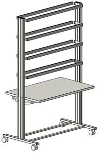 High-quality, mobile experiment and demonstration stand from the SybaPRO range with aluminium table legs, compatible with all add-ons and extensions from the SybaPRO system. The experiment stand can be used from either side and interchangeable perforated sheet metal wall panels and/or training panels in A4 format can be simultaneously attached to the front and back making the trolley particularly suitable for assembly or project work.